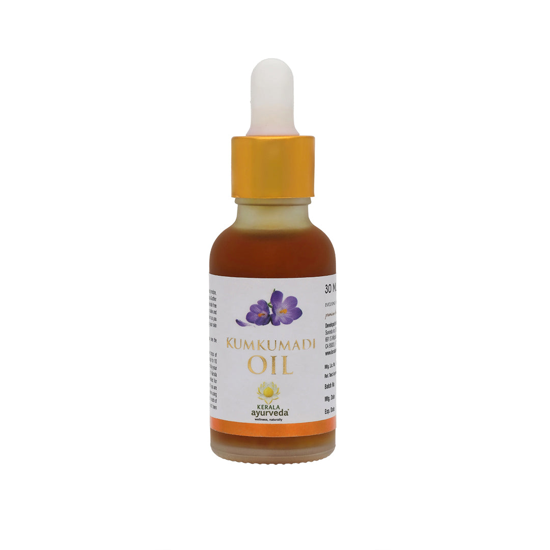 What Makes Kerala Ayurveda's Kumkumadi Thailam Unique? Kerala Ayurveda's Kumkumadi Thailam stands apart because of its: Authentic Ayurvedic Formulation, We stay true to Ayurvedic traditions, using a time-honored recipe perfected over generations for optimal skin benefits. Careful Sourcing of Premium IngredientsEach herb is sourced from its native region for unmatched quality: Saffron from Jammu & Kashmir for brightening. Beauty Berry from Kerala for hydration. Red Sandalwood from Andhra Pradesh for soothing and calming the skin. Traditional Thaila Paaka Vidhi PreparationOur oil is crafted using the Thaila Paaka Vidhi, which includes an overnight infusion with cow's milk to enhance the potency of the ingredients for comprehensive skincare. Gentle and Safe for All Skin TypesMade without harsh chemicals, this luxurious oil is gentle on sensitive skin and free of artificial additives, ensuring safe and effective use. Why Choose Kerala Ayurveda's Kumkumadi Thailam? Kerala Ayurveda brings over 75 years of expertise in crafting high-quality, authentic Ayurvedic products. Sustainably Sourced: Ethical and eco-friendly practices ensure the purest ingredients for your skin and the planet. Pure and Potent: GMP-certified, each batch undergoes rigorous testing for purity and effectiveness. Holistic Skincare: Beyond beauty, Kumkumadi Thailam nourishes, repairs, and rejuvenates for healthier, more radiant skin. When to Choose Kumkumadi Thailam Enhance your skincare with Kumkumadi Thailam if you want to: Achieve Radiant, Even Skin ToneThis luxurious Ayurvedic oil naturally brightens your complexion, leaving you with a radiant, glowing look. Reduce Dark Spots and BlemishesPerfect for addressing acne scars, pigmentation, and fine lines, Kumkumadi Thailam smooths and improves skin texture over time. Hydrate and Nourish Your SkinWhether your skin is dry or tired, this deeply moisturizing oil restores softness and vitality. Restore Your Skin's Natural GlowPacked with powerful herbs and botanicals, this oil rejuvenates your skin, keeping it healthy and youthful-looking. Discover a Time-Tested Beauty SecretWith an authentic Ayurvedic recipe, this traditional formula blends centuries of wisdom with modern skincare needs. Unlock the Power of 26 Potent Ingredients By incorporating Kerala Ayurveda's Kumkumadi Thailam into your daily skincare routine, you unlock the benefits of 26 potent ingredients: 23 Beauty Enhancers for glowing skin. 18 Restorative Herbs to heal and repair. 13 Renewing Botanicals to revitalize your skin. 24 Rejuvenating Herbs to nourish deeply and naturally restore your skin's radiance. This expertly crafted blend works together to naturally enhance and care for your skin, helping you achieve a soft, even, and luminous complexion. How It Works At the heart of Kumkumadi Thailam is Kumkuma (Saffron), sourced from the pristine valleys of Jammu & Kashmir, celebrated for its brightening and rejuvenating properties. Combined with Beauty Berry from Kerala, Red Sandalwood from Andhra Pradesh, and other premium ingredients, this oil provides unmatched care for your skin. The oil is prepared using a traditional method where herbs are infused overnight to maximize their potency. This process ensures every drop of Kumkumadi Thailam is packed with skin-loving nutrients that hydrate, repair, and rejuvenate. The result? A product that doesn't just care for your skin - it transforms it. How to Use for the Best Results WHEN: Use as part of your nighttime skincare routine. HOW: Start with clean, dry skin. Apply 3-5 drops of Kumkumadi Thailam and gently massage it into your face and neck in upward motions. Leave it on overnight for deep hydration and absorption. DOSE This oil is safe for all skin types, including sensitive skin. Use daily or as recommended by your skincare expert.