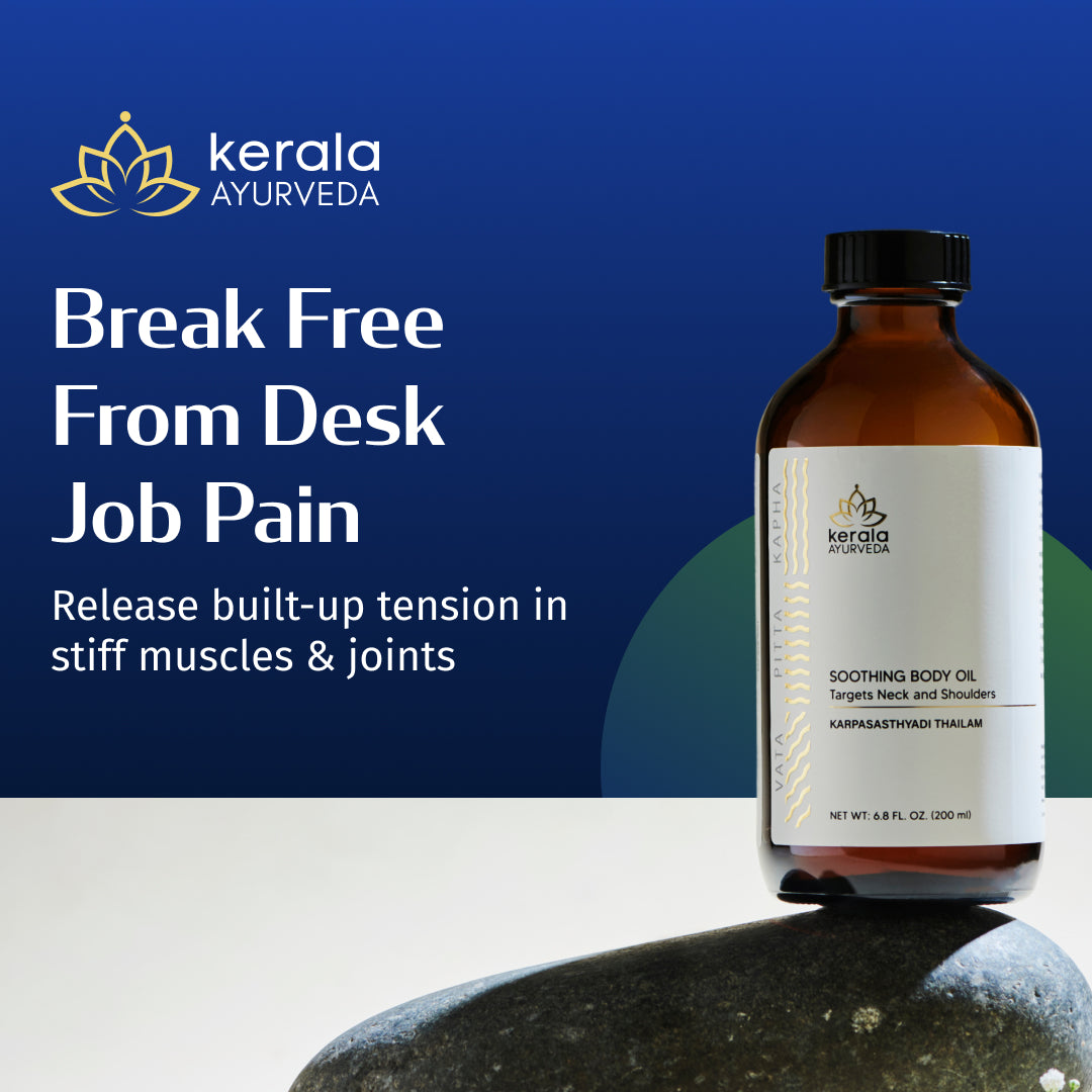 Karpasasthadi Thailam gives chronically stiff muscles and joints a chance to relax and release built up tension. Made from a blend of Cotton Seed, Sesame Seed Oil, and Organic Cultured Ghee traditionally used to minimize unhealthy inflammation levels, this topical regimen was specifically formulated for people who sit for long periods.